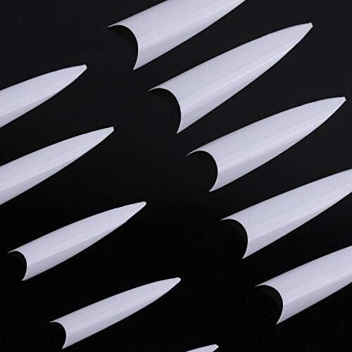 long stiletto tips that can be trimmed to long, straight-edge, pointed-edge, or round-edge styles.
