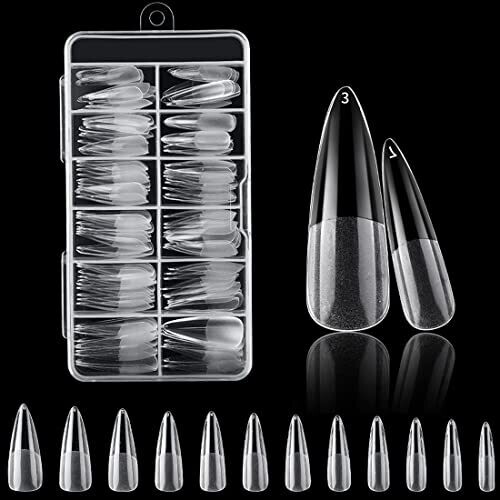 Clear Frosted Full Nail Tips Almond Acrylic False Nails 120 pcs 12 Sizes Stiletto Long