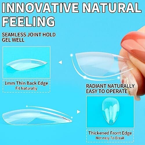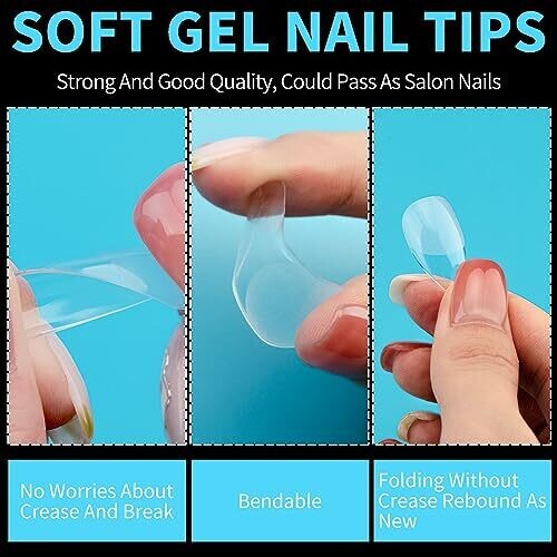 soft gel full-cover nail tips made from soak-off resin; thinner, more durable, malleable, and natural-looking compared to older artificial tips.