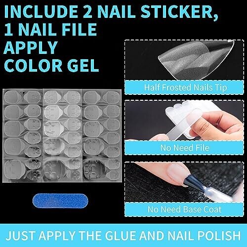 • Clear half-frosted, almond-shaped full-cover nails designed for a natural, seamless extension