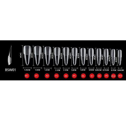 • 120-piece full cover clear nail tips in 12 sizes for a precise, perfect fit.