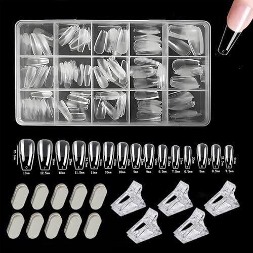 Achieve salon-quality nails at home with 330Pcs soft gel full cover nail tips. Ten sizes ensure a precise fit, medium coffin shape with a half-matte clear finish offers a natural look, while durable construction resists wear and keeps shape. Includes a box for organized storage.
