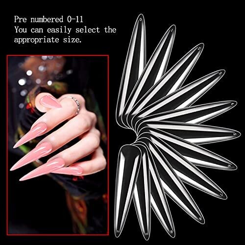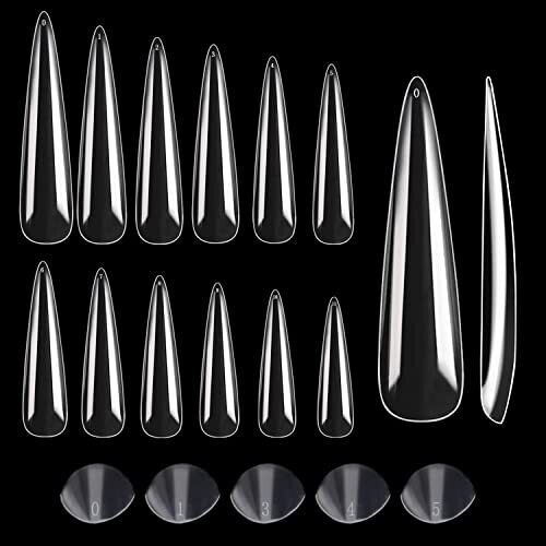 Experience salon quality nails at home with premium full-cover stiletto tips designed for a flawless, long-lasting manicure. Extra-long, no-C-curve design complements most nail beds and includes 600 clear tips in 12 sizes for quick, precise fit and versatile nail art.