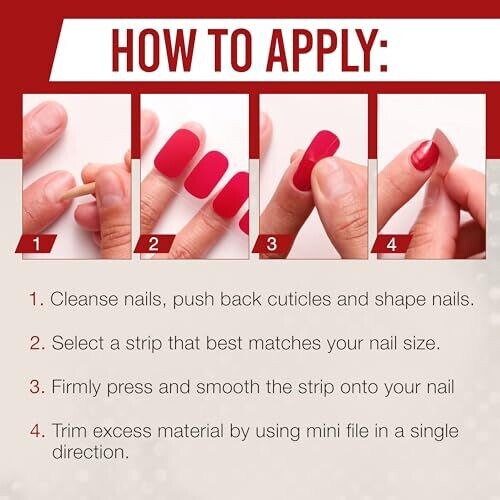 Achieve a bold, salon-grade manicure at home with Ardell Nail Addict Nail Strips in Regal Red. Flexible strips hug nails for smooth application, long-lasting color that resists chips, and mess-free peeling—includes 16 strips and handy tools for precise results.