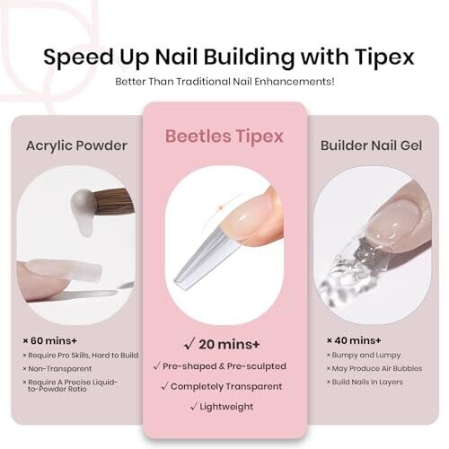 Beetles Tipex Instant Apex Nail Tips, 480pcs Pre-Building & Pre-Etched Gel Tips, Clear Coffin Full-Cover Nails