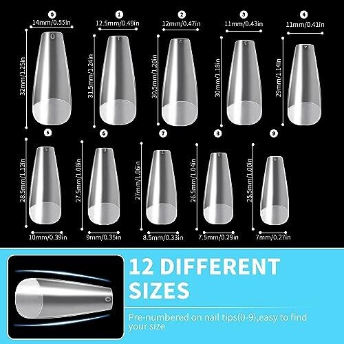 - Individually numbered sizes 0-11 to ensure a precise fit for every nail, with the ability to trim to desired length.