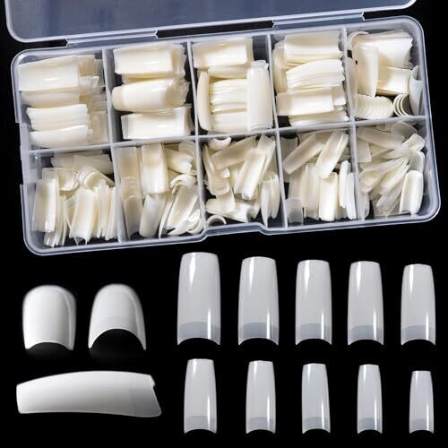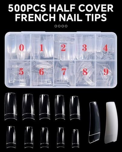 Elevate DIY nails with coffin-shaped, clear half-cover tips compatible with gel, acrylic, or dip systems. Includes 500 pieces in 10 sizes, organized for fast fitting. Natural-looking, lightweight, and pre-shaped—save time for home or salon nail art.