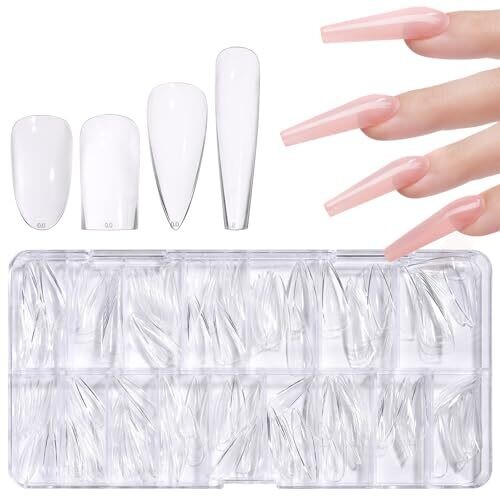 • Kads Deep C-Curve 160pcs Full-Cover Nail Tips Clear Pre-Built 16 Sizes