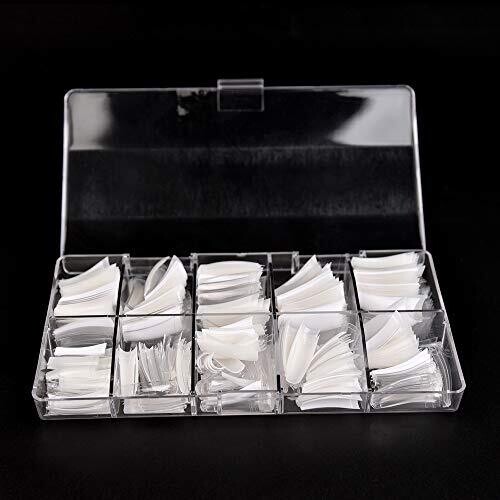 Kads 500pcs Clear Half Cover Tips Coffin 10 Sizes Pre Shaped False Gel Nail Tips for Salons