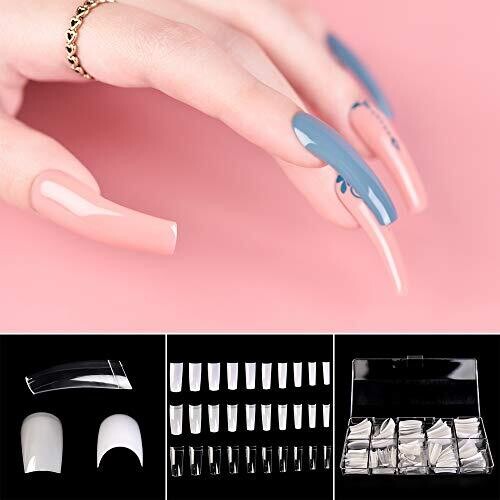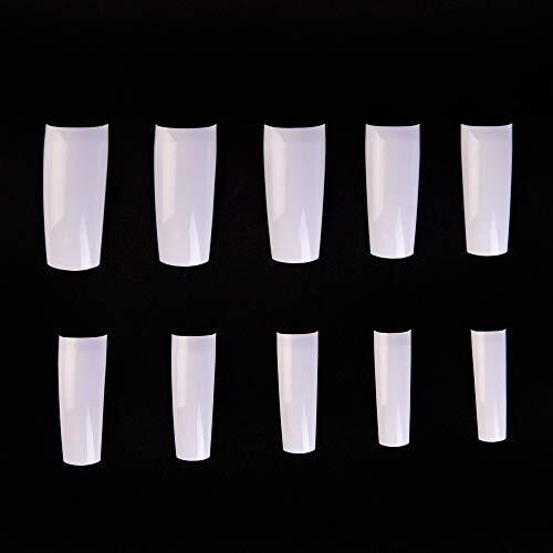 500 pieces in 10 sizes; color mix includes 300 transparent, 150 natural, and 50 white tips. Material