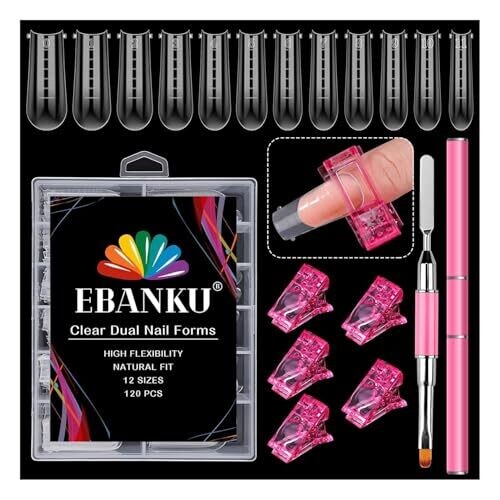 - Includes 120 dual nail forms, a pink dual-ended nail art brush & picker, and 5 pink nail clips for a ready-to-use kit.