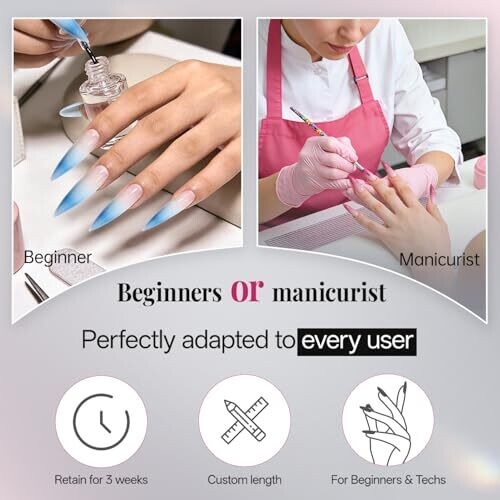 • Easy to trim, file, and dye with color lasting 1–3 weeks for long-lasting wear.