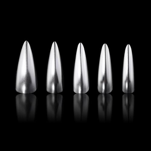 • Misud Long Pressure False Nails Stiletto Glue Gloss Almond Acrylic Silver Chrome 24 pcs