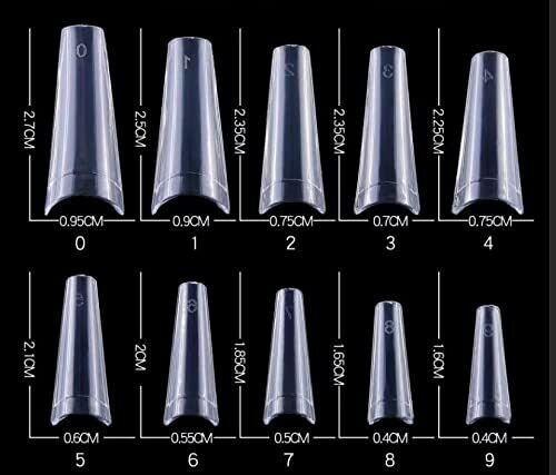 Krofaue 500pcs Clear Stiletto Nails Extra Long Tips 10 Sizes XL (ABS) Material