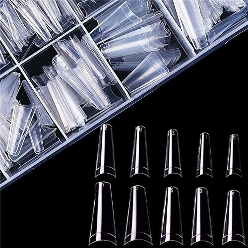 Experience salon-grade results at home with the Mueyan 500pcs clear nail tips and acrylic clipper set. Includes 500 reusable French-style tips and a precision clipper, 10 sizes (50 tips each), durable ABS material for versatile nail art.