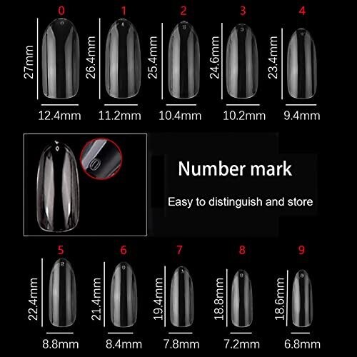 • Oval Shaped Fake Clear Nail Tips for Acrylic Nails Full Cover, 500pcs, 10 Sizes