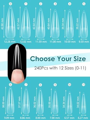 • Includes 240 pieces across 12 sizes (0–11), with 20 tips per size to fit a wide range of nail beds precisely.
