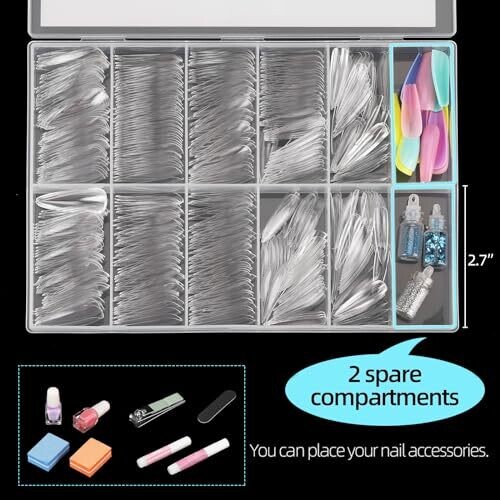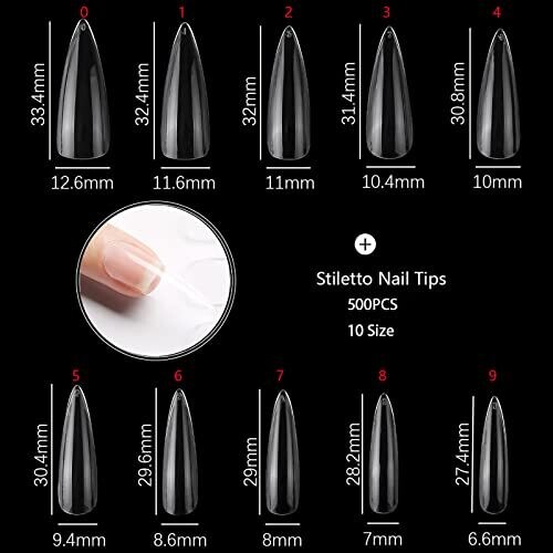 Achieve salon-quality, full-cover nails with a clear, professional look. Includes 500 premium ABS nail tips in 10 sizes for quick, precise matching. Clear tips for easy trimming and durable wear, stored in a numbered, portable case for fast selection and organization.