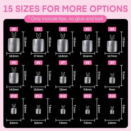 • Una Gella 504 pcs Square Toe Nail Tips for Big Toe, 15 Sizes, Gel Full Cover