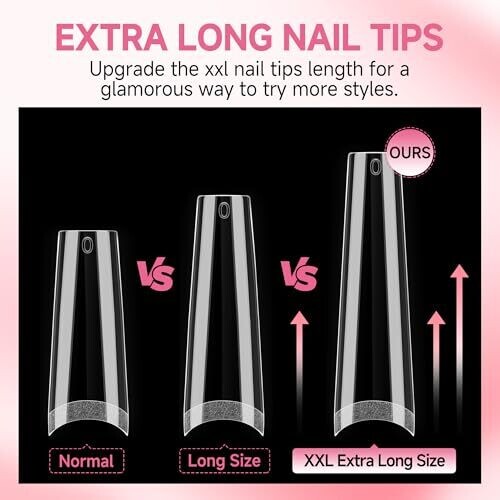 • Premium XXL coffin nail tips set with 216 pieces, designed for long-lasting nail extensions in salons or at home.