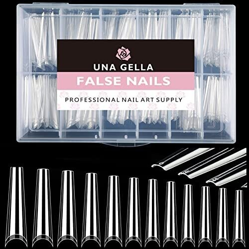 Una Gella Nail Tips Ballerina - 216pcs Long Coffin Fake Tips for Nail Extension 12 Sizes Home DIY Salon