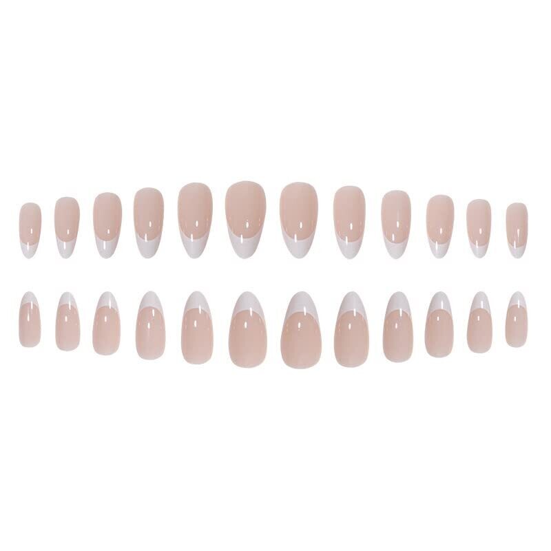 • Acrylic Press On Nails 24pcs Medium Almond French Full Cover White Tip for Women