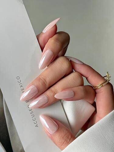 Shimmery pink finish for a radiant look. Almond shape elongates nails, while salon-grade materials deliver a professional finish at home. Reusable with adhesive tabs and glue, lasting wear in a 15-size kit stored in a transparent box.