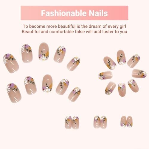 • Lyvixora 24-Set Press on Nails delivers a salon-ready manicure with almond-shaped, full-cover false nails in a chic French tip and flower color swirl design.