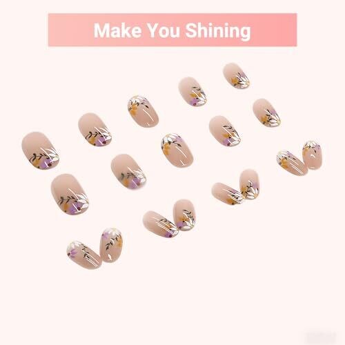 Lyvixora 24-set press-on nails deliver a salon-ready almond shape with a chic french tip and flower swirl designs. Reusable and lightweight, they apply with adhesive backing for up to two weeks of easy, brush-free glamour on the go.