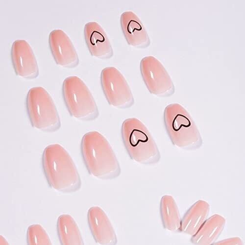 • Bufenia Short Coffin Press-On Nails Nude Color Heart Bellarina Acrylic 24pcs