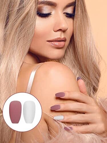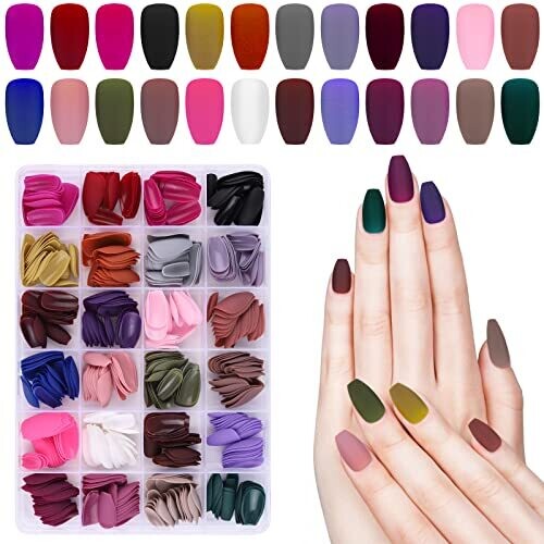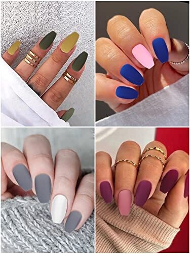 • Ebanku 576 Coffin Nails, 24 Colors Matte Acrylic Press On Nails Short Ballerina