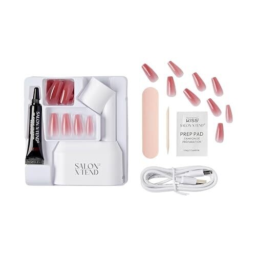 - Includes 30 full-cover nails, LED Soft Gel Adhesive 5 ml, LED lamp, USB cable, prep pad, manicure stick, and mini file for a ready-to-use manicure.