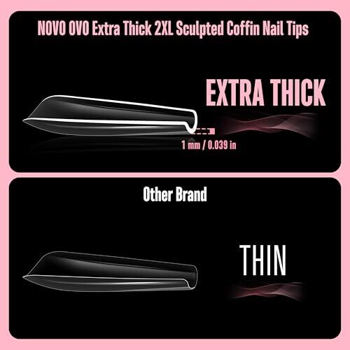 • Novo Ovo Sculpted XXL Coffin Nail Tip for Curved Nails, Extra Thick Press-On, 15 Sizes 300pcs