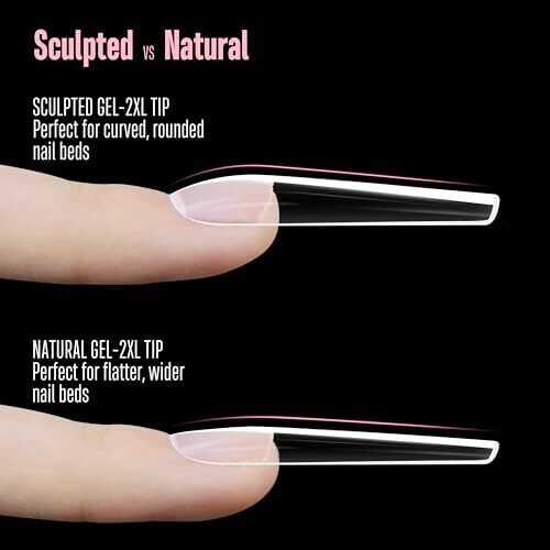 Product is a set of XXL sculpted soft gel nail tips intended for curved nail beds.