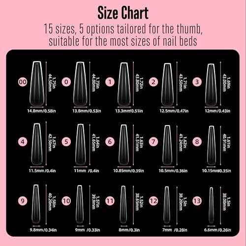 Set includes 15 sizes with a cuticle design tailored for better fit: