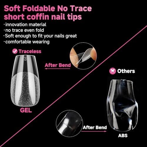 • Clear, soft gel tips suitable for use with nail polish, dip powder, or acrylic powder to create nail art.