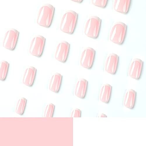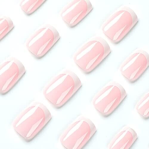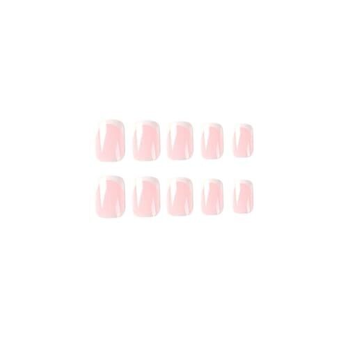 • 24 pcs White French Tip Press On Nails Pink Glossy Square Full Cover Nails Wear