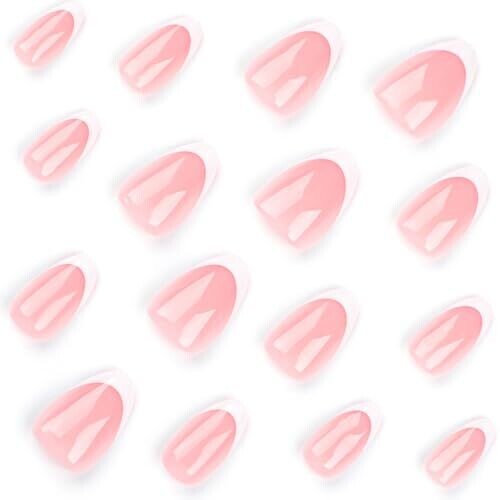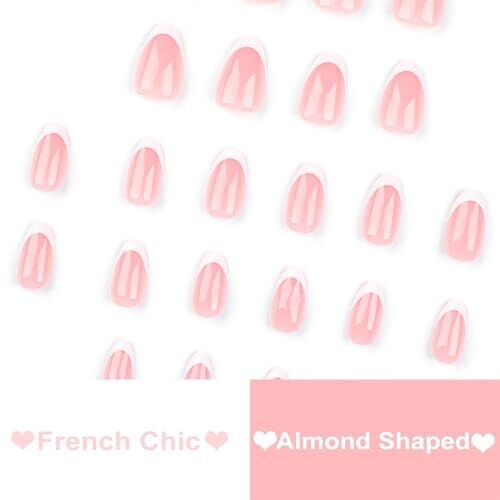 • 24-piece set of medium almond-shaped press-on nails with a glossy finish and elegant French tip.