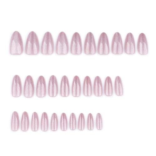 false nails feature a nude surface with a shining tip designed to resemble cat eye effects.