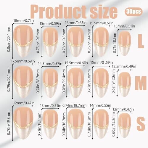 Salon-quality French tip nails with elegant gold accents come in a 30-piece set with jelly adhesive tabs for quick at-home application. Lightweight, flexible, and removable without damage, these nails fit weddings, parties, work, and everyday wear.