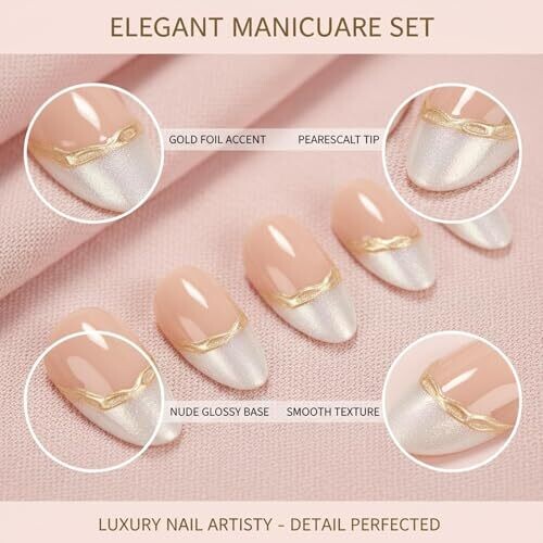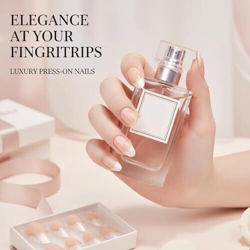 • Salon-quality French tip design with elegant gold accents for a chic, high-end look