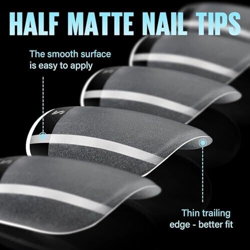 Tomicca 510pcs French Short Oval Nail Tips 12 Sizes Clear Matte Half Cover