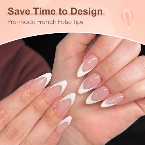 • ZAHRVIA Almond French Press On Nails delivers a salon-like manicure at home with full-cover white-tip nails for a flawless French look.