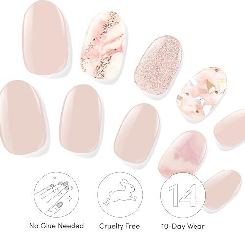 Long-lasting gel strips with chip resistance, no dry time, lasting up to 14 days.
