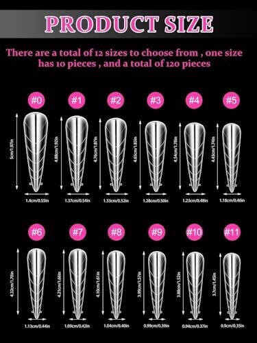 • 12 sizes ensure a perfect fit for every nail, helping you achieve consistent length and shape with confidence.