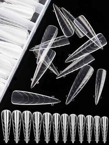 Premium Ebanku dual nail forms for poly extension gel—create flawless stiletto and other shapes at home with salon-grade results. Includes 120 reusable, extra-long forms with clear grids and a dual-side handle for easy application and removal. 12 sizes ensure perfect fit. No glue needed.