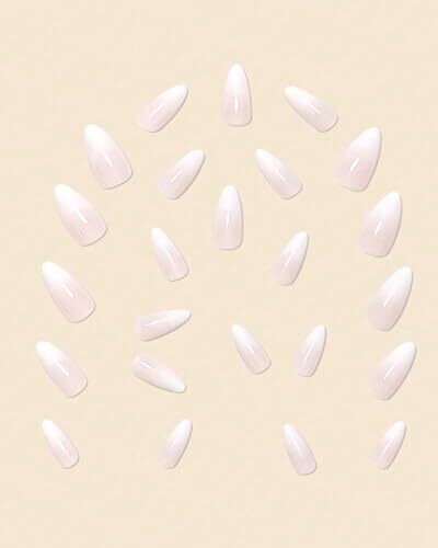 24-Piece Press On Nails Set, Medium Almond French Tips with Silver Glitter and Stars, Pink Nude (White Ombre Gradient Variant)