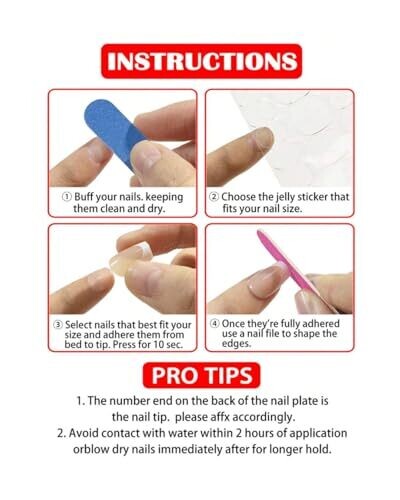 • Includes essential tools for a smooth finish: a jelly nail glue and a nail file for precise shaping and secure adhesion.