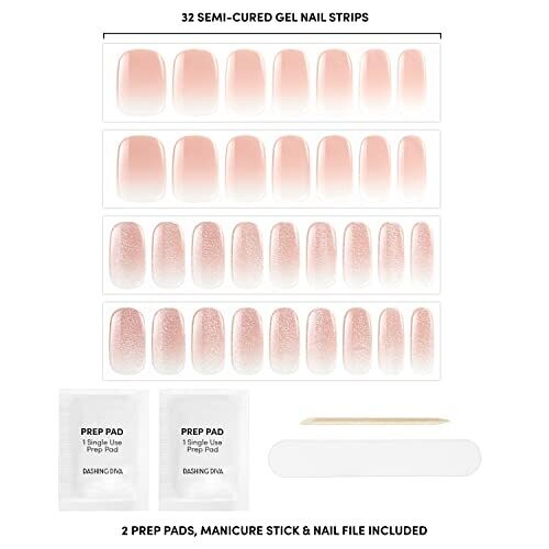 Dashing Diva Gloss Nail Strips All Lined Up | 32 Nail Wraps, 1 Prep Pad, 1 Nail File | UV Free, Chip Resistant, Long Lasting Gel Nail Stickers
