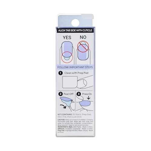 • Complete DIY manicure set includes 30 press-on nails, mini nail file, prep pad, and manicure stick.
